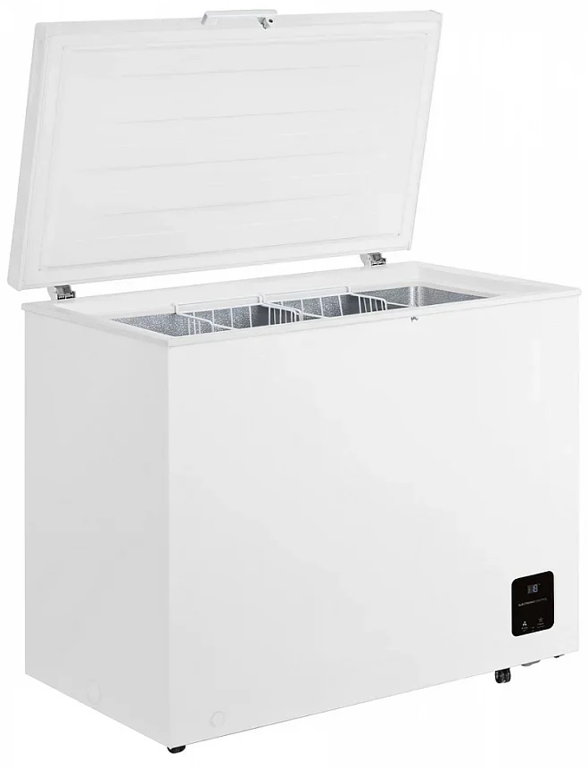 Управление реализовано электронно с сенсорными кнопками и встроенным дисплеем, что упрощает настройку температуры и контроль состояния ларя. Функция суперзамораживания позволяет быстро опустить температуру и сохранить структуру свежего продукта при добавлении большого объёма. Индикация повышения температуры и звуковые/световые подсказки предупреждают о проблемах, а механическая блокировка двери предохраняет от несанкционированного доступа. Уровень шума 42 дБ делает работу практически бесшумной, поэтому устройство не будет мешать в жилых помещениях.