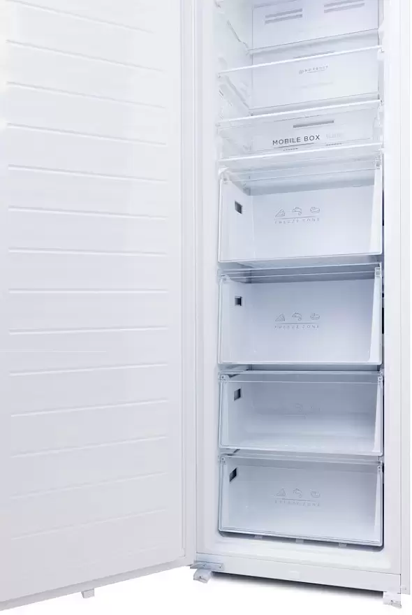 Встраиваемый прибор проще разместить в комнате, даже если общий метраж не такой уж большой. Вы можете спрятать его за декоративной панелью от мебельного фасада — советуем заранее определить нишу и заказывать панели исходя из типа крепления к двери. Способ монтажа в данной модели: скользящее крепление двери (система door sliding) Вы можете поменять направление открывания двери, так как упор переставляемый и ее можно перевесить на другую сторону. Такая функция открывает больше возможностей для установки. Отдельную морозильную камеру чаще всего выбирают для частного дома или дачи, для производства, когда актуально хранение большого объема замороженных продуктов. Советуем обратить внимание на этот вариант. Количество камер: 1.