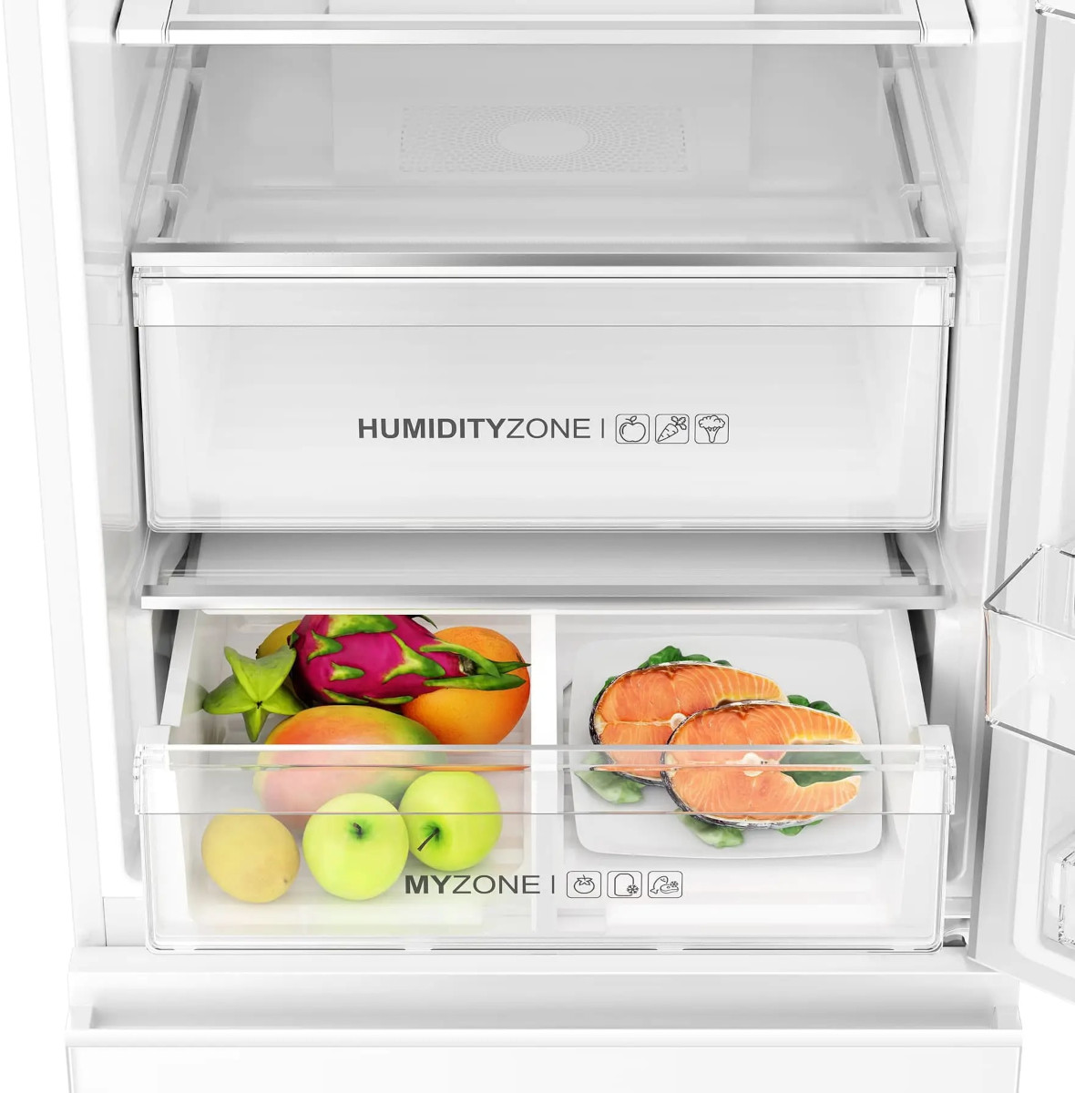 Так, для хранения овощей, фруктов, зелени необходима увеличенная влажность около 90-95%. Для хранения рыбы, мяса, сыров необходимо, чтобы уровень влажности был понижен: в таком отделении он может составлять около 50-55%, а температура может снижаться до −1 градуса. Нулевая камера может иметь собственную подсветку и систему размораживания.