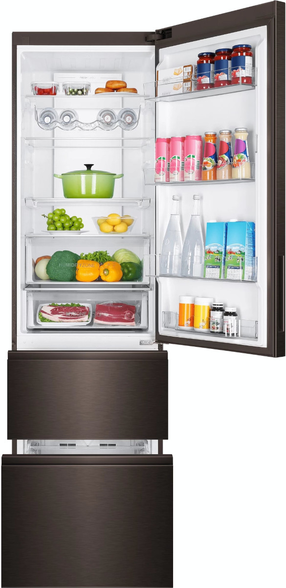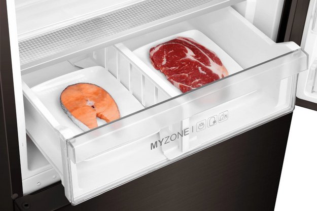 Трехкамерные модели выпускаются в нескольких вариантах. В некоторых случаях в качестве третьей камеры поступает так называемая зона свежести — отделение, где поддерживается температура около 0 градусов. В другом варианте подобные модели имеют морозильную камеру, состоящую из двух выдвижных ящиков.