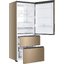 Холодильники с так называемой французской дверью или French Door также имеют распашные двери, но за ними находится не две, а одна камера. Эти двери занимают не всю высоту холодильника, а только ее часть. В нижней части подобных холодильников могут находиться либо еще две распашные двери, либо выдвижные морозильные ящики.