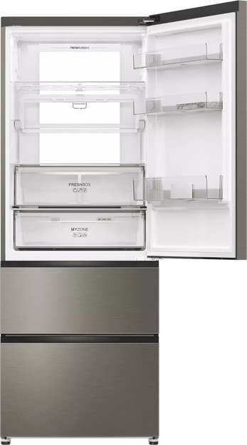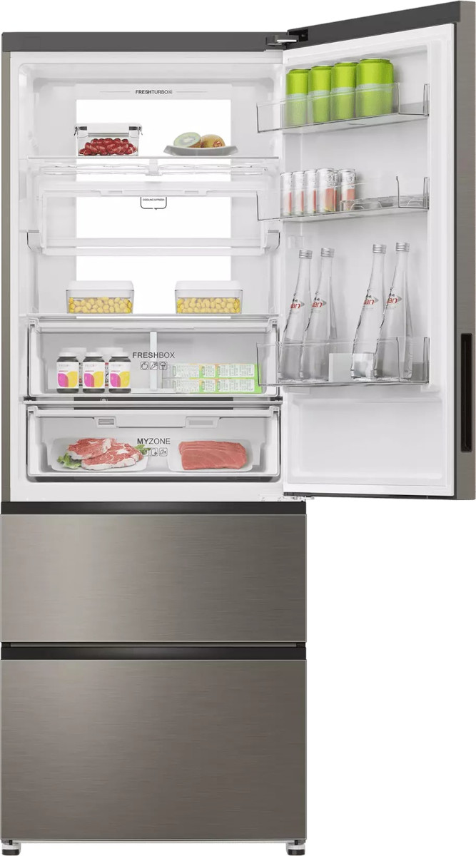 Трехкамерные модели выпускаются в нескольких вариантах. В некоторых случаях в качестве третьей камеры поступает так называемая зона свежести — отделение, где поддерживается температура около 0 градусов. В другом варианте подобные модели имеют морозильную камеру, состоящую из двух выдвижных ящиков.