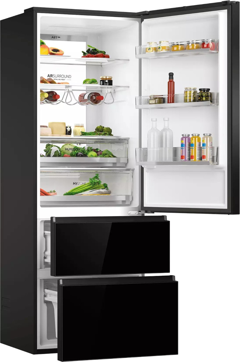 Трехкамерные модели выпускаются в нескольких вариантах. В некоторых случаях в качестве третьей камеры поступает так называемая зона свежести — отделение, где поддерживается температура около 0 градусов. В другом варианте подобные модели имеют морозильную камеру, состоящую из двух выдвижных ящиков.