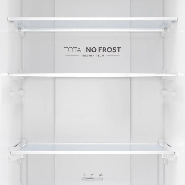 No Frost (Total No Frost, Frost Free): вентилятор обеспечивает циркуляцию охлажденного воздуха, благодаря чему лед не нарастает на стенке, а концентрируется только на скрытом внутри холодильника испарителе. Талая вода собирается в специальной емкости и испаряется. Такой холодильник не нужно размораживать – это экономит время и позволяет не останавливать прибор. Благодаря этим плюсам в современных моделях No Frost – самая распространенная система.