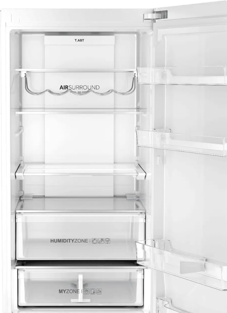 No Frost (Total No Frost, Frost Free): вентилятор обеспечивает циркуляцию охлажденного воздуха, благодаря чему лед не нарастает на стенке, а концентрируется только на скрытом внутри холодильника испарителе. Талая вода собирается в специальной емкости и испаряется. Такой холодильник не нужно размораживать – это экономит время и позволяет не останавливать прибор. Благодаря этим плюсам в современных моделях No Frost – самая распространенная система.