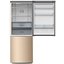 Haier C4F744CGG — отдельностоящий холодильник в золотистом корпусе. Общий объем его составляет 439 литров. Климатический класс SN-ST гарантирует надежную работу при наружных температурах от +10°C до +43°C. Инверторный компрессор обеспечивает минимальный уровень шума 40 дБ. Модель характеризуется классом энергоэффективности A++, что гарантирует экономичную работу. Встроенная LED-подсветка служит наилучшему обзору внутреннего пространства. Для комфортной эксплуатации предусмотрена система NoFrost. Она не только препятствует образованию инея и наледи, но и обеспечивает равномерное распределение холода по всему объему, а также замедляет размножение бактерий. Благодаря этому продукты хранятся дольше и не теряют полезных свойств. Имеется специальный отсек My Zone, температуру в котором можно устанавливать независимо от окружающего пространства. Это позволяет создать оптимальные условия для свежего мяса или рыбы. Для поддержания оптимального уровня влажности 90% используется мембранная технология HCS.