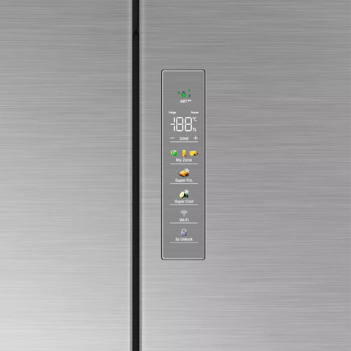 Гораздо точнее сориентироваться по индикаторам можно в холодильниках с электронной системой управления. Эти устройства обычно оснащены дисплеем, на котором высвечиваются значения фактической температуры в холодильной и морозильной камерах. Рядом с ними располагаются кнопки, во многих случаях сенсорные, при помощи которых можно регулировать температуру в каждой камере отдельно, и индикаторы включения этих камер. Здесь же, на панели инструментов, находятся индикаторы, указывающие на активацию дополнительных опций — например, режимов быстрого замораживания и быстрого охлаждения, отпускного режима, блокировки панели управления от детей.