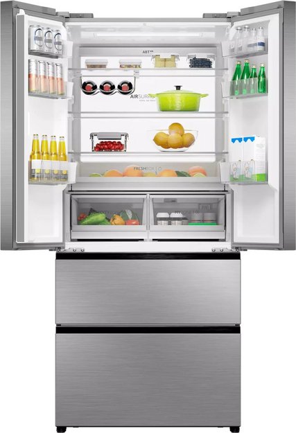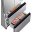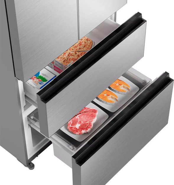 Холодильники с так называемой французской дверью или French Door также имеют распашные двери, но за ними находится не две, а одна камера. Эти двери занимают не всю высоту холодильника, а только ее часть. В нижней части подобных холодильников могут находиться либо еще две распашные двери, либо выдвижные морозильные ящики.