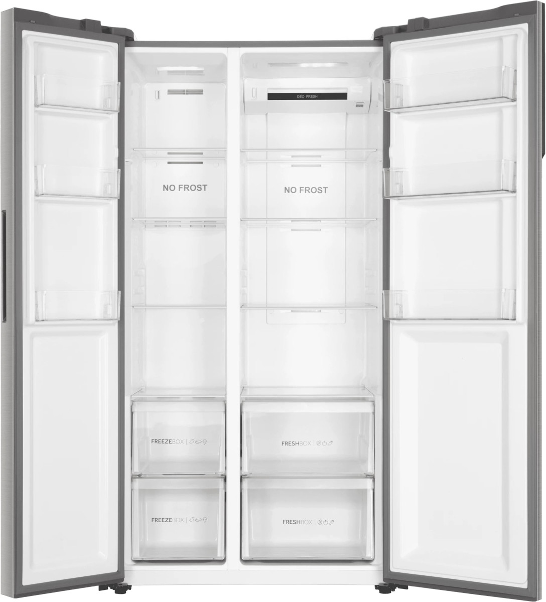 Данная модель — отдельностоящая, поэтому нужно тщательно подобрать место для ее размещения. Холодильник Side-by-Side с необычным расположением камер — сбоку друг от друга — позволяет увеличить объем продуктов для хранения. Такой вариант подходит обладателям просторной кухни, большим семьям, людям, которые запасают продукты и готовят впрок. Количество камер: 2.