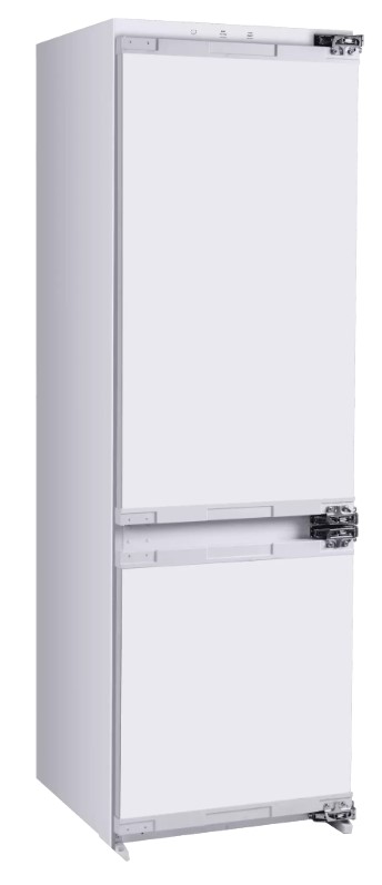 Встраиваемые холодильники монтируются в нишу или колонну. Передняя их часть закрывается декоративным мебельным фасадом и снаружи не отличается от дверцы обычного кухонного шкафа, так что их не нужно подбирать под интерьер помещения. Объем этих холодильников, как правило, несколько меньше, чем у отдельностоящих, так как при встраивании необходимо оставлять свободное пространство для вентиляции. Они отличаются меньшим уровнем шума, а также лучше держат холод и отличаются большей экономичностью из-за дополнительного слоя изоляции. Ассортимент этих холодильников не так велик, как у отдельно стоящих, установка более трудоемкая, а стоимость обычно несколько выше.