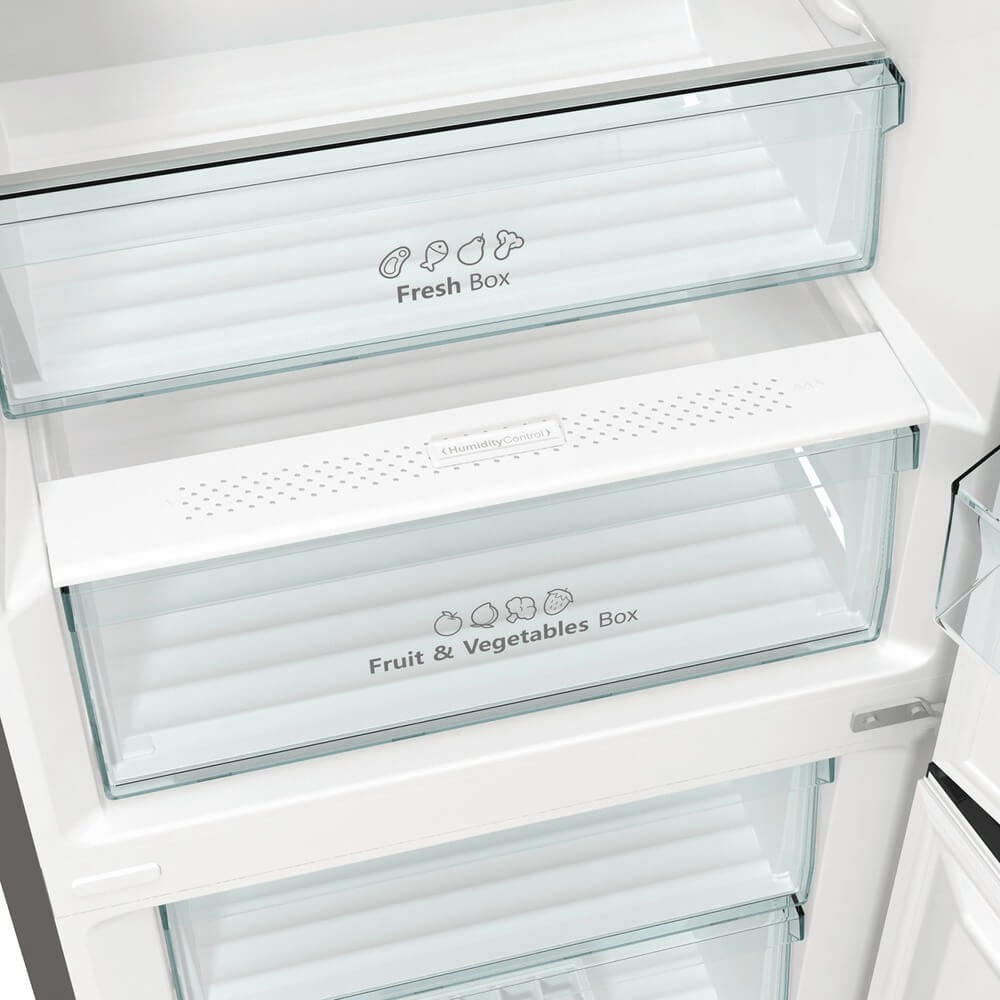 Вместительные контейнеры позволяют хранить достаточное количество овощей и фруктов. Для более длительного хранения и поддержания свежести овощей и фруктов разработаны специальные системы хранения. Среди них, например, зона свежести с увеличенной влажностью до 85% и температурой около 0 градусов. Это герметично закрывающийся ящик, часто на выдвижных роликах или направляющих, в котором имеется специальное задвижка, позволяющая регулировать влажность. Как известно, при более высокой влажности продукты с большим содержанием воды дольше остаются свежими.