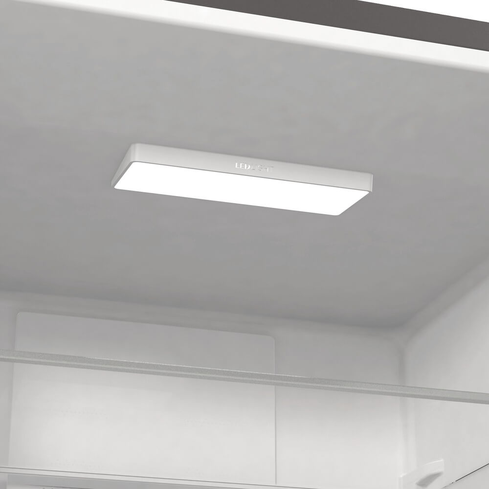 Внутреннее освещение холодильной камеры позволяет обеспечить хороший обзор содержимого и быстро найти необходимые продукты. Чем меньше времени будет открыта дверца холодильника, тем лучше будет поддерживаться в камере выбранная температура, следовательно, улучшится и качество хранения продуктов.