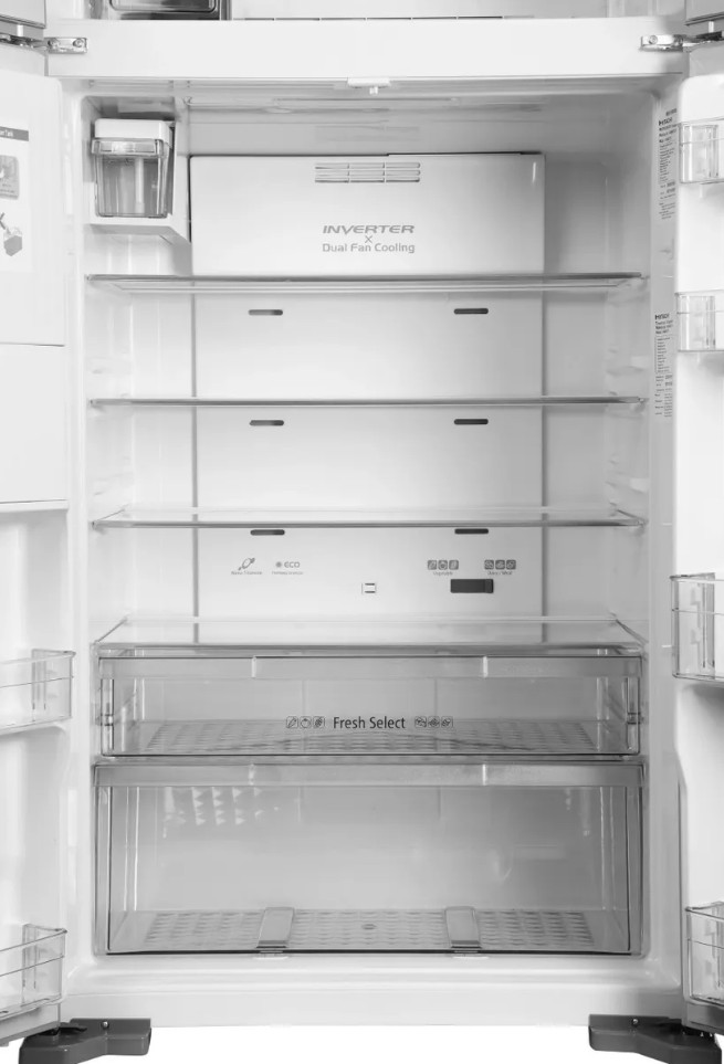 Такое раздельное охлаждение позволяет эффективно понижать температуру во всех уголках холодильника и тратить меньше энергии на работу.