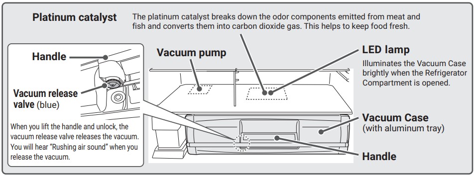 В некоторых подобных устройствах, например, в холодильниках Hitachi, выделяется отделение с технологией вакуумирования продуктов, увеличивающей срок их хранения, а также отдельный герметичный отсек для хранения овощей со специальной технологии поддержания свежести и контролем влажности.