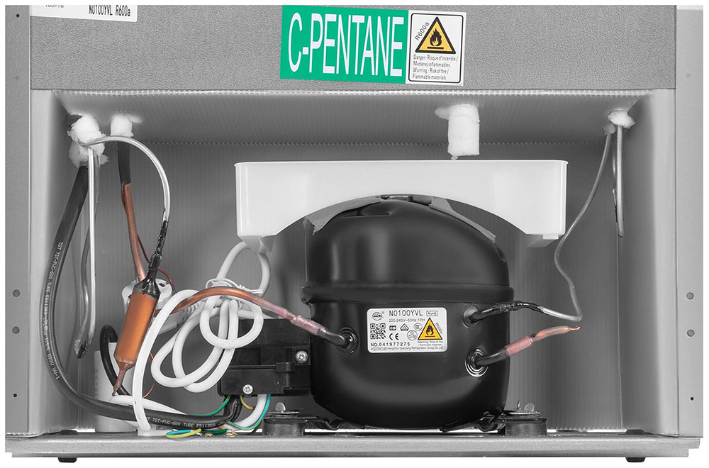 Однако наиболее безопасным хладагентом в настоящее время признан R600а, или изобутан, — бесцветный газ, который не разрушает озоновый слой и не способствует усилению парникового эффекта, отличается низким рабочим давлением, что способствует снижению уровня шума, а также позволяет уменьшить потребление электроэнергии.