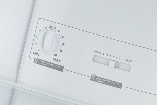 Основным элементом управления в холодильниках с механической или электромеханической системой служит поворотной переключатель с делениями. Поворотом ручки можно регулировать степень охлаждения на нескольких уровнях — от минимального до максимального. Точное значение температуры в таких устройствах установить невозможно. Кроме того, во всех холодильниках присутствует система индикации, которая действует при повышении температуры в камере выше заданного значения, а также лампочка, которая загорается при неплотно закрытой дверце.
