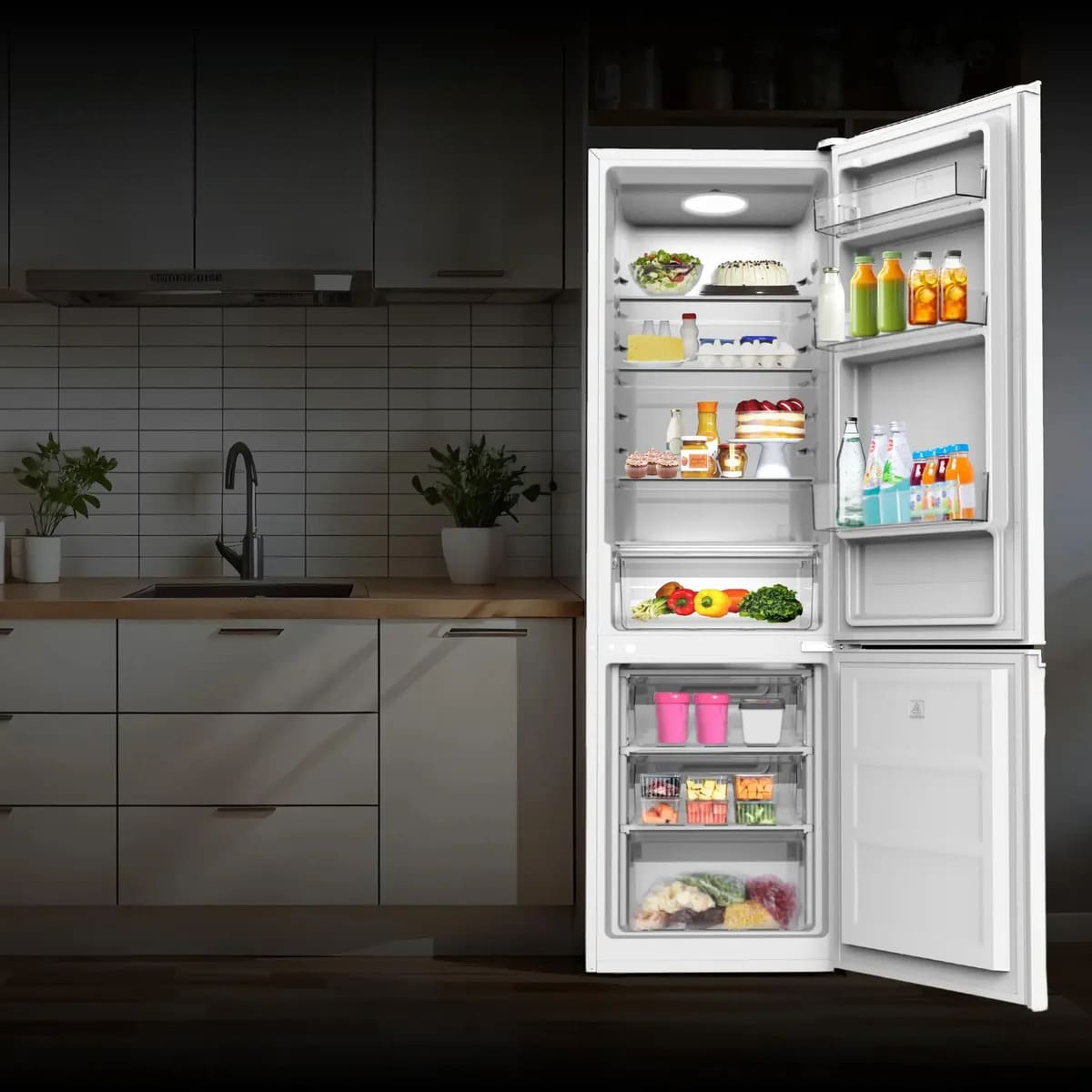 Двухкамерные модели — самые востребованные у покупателей. Они состоят из холодильного отделения и морозильной камеры, которая может располагаться сверху или снизу. Производители предлагают огромный ассортимент подобных устройств, от дешевых до элитных моделей, — с размораживанием No Frost, электронным управлением и двумя контурами охлаждения.