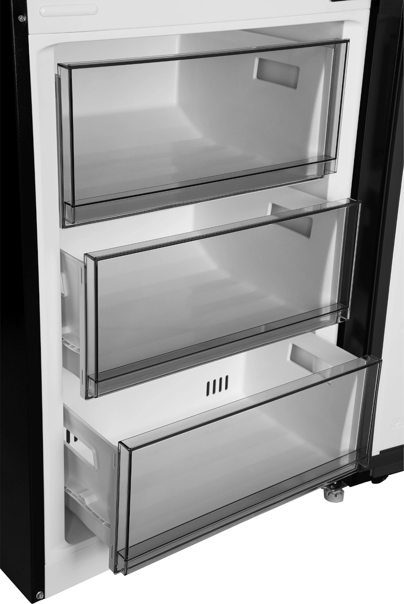 Трехкамерные модели выпускаются в нескольких вариантах. В некоторых случаях в качестве третьей камеры поступает так называемая зона свежести — отделение, где поддерживается температура около 0 градусов. В другом варианте подобные модели имеют морозильную камеру, состоящую из двух выдвижных ящиков.