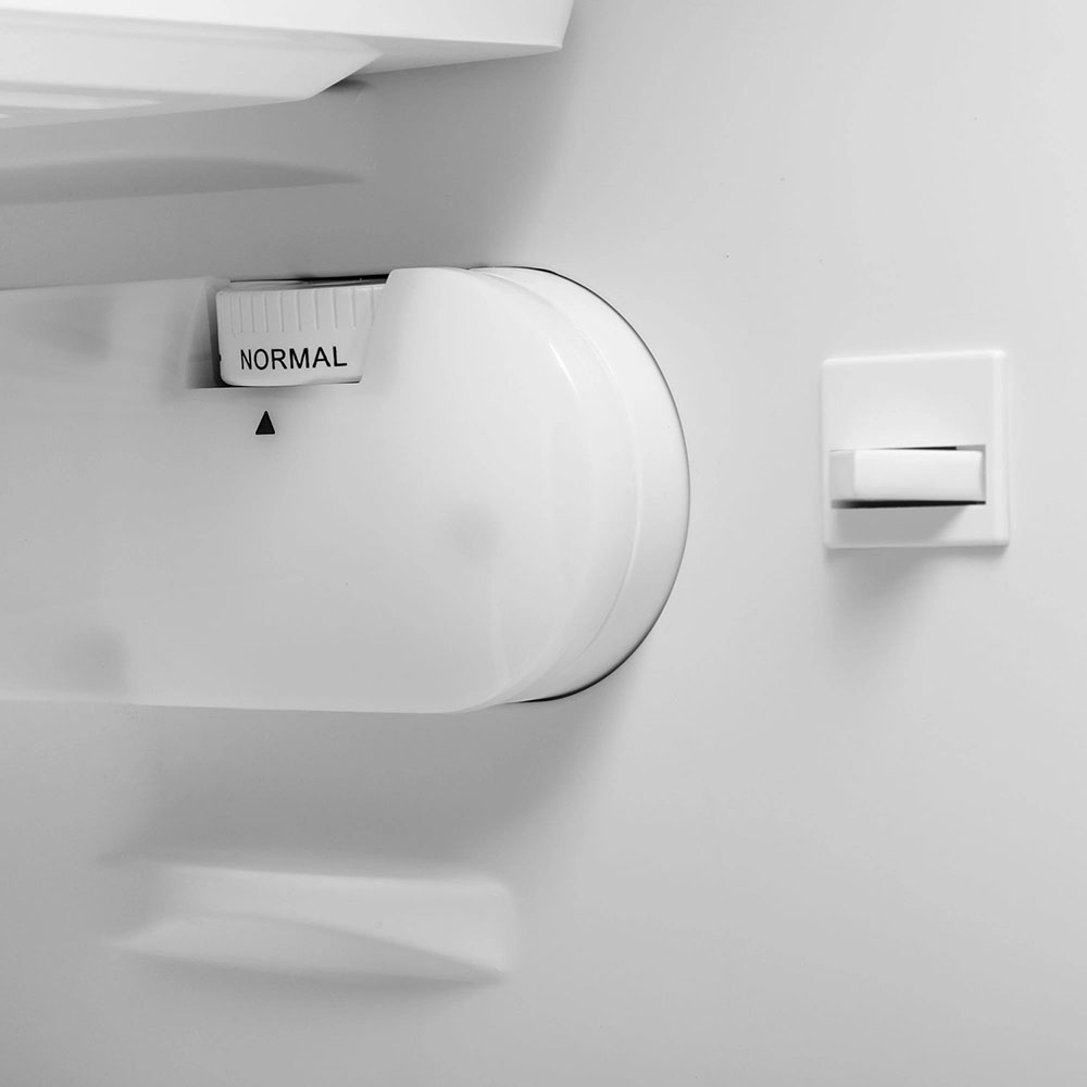 Основным элементом управления в холодильниках с механической или электромеханической системой служит поворотной переключатель с делениями. Поворотом ручки можно регулировать степень охлаждения на нескольких уровнях — от минимального до максимального. Точное значение температуры в таких устройствах установить невозможно. Кроме того, во всех холодильниках присутствует система индикации, которая действует при повышении температуры в камере выше заданного значения, а также лампочка, которая загорается при неплотно закрытой дверце.