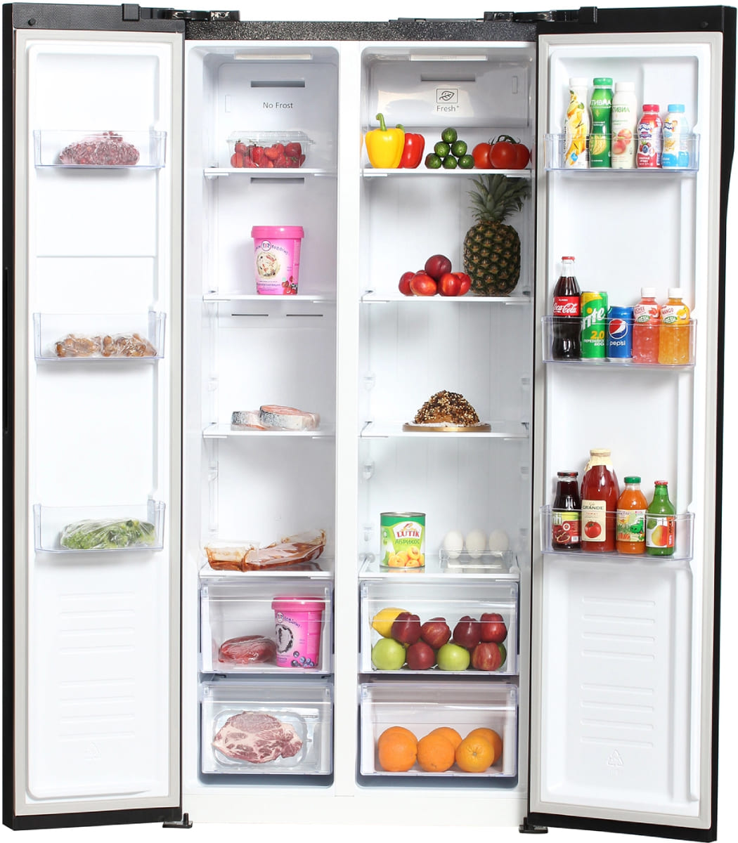 Холодильники Side-by-Side, что в переводе означает «бок-о-бок», — вместительные устройства, в которых холодильная и морозильная камеры располагаются рядом друг с другом. Они предназначаются для хранения значительного запаса продуктов и иногда называются холодильниками с американским типом компоновки, поскольку такие приборы с распашными дверями появились именно в США.