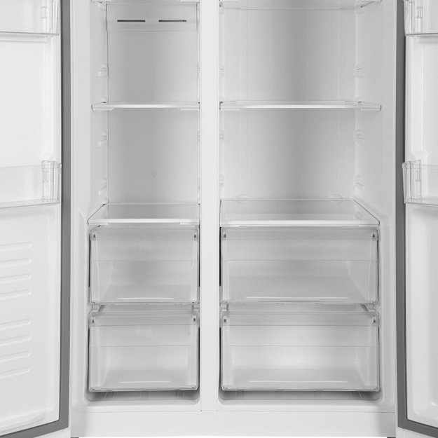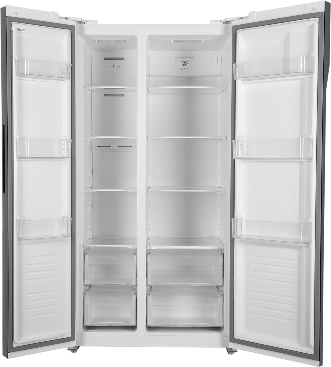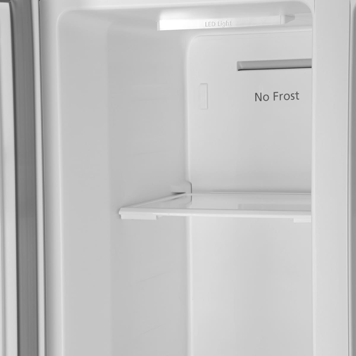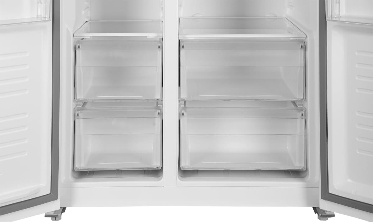 Данная модель — отдельностоящая, поэтому нужно тщательно подобрать место для ее размещения. Холодильник Side-by-Side с необычным расположением камер — сбоку друг от друга — позволяет увеличить объем продуктов для хранения. Такой вариант подходит обладателям просторной кухни, большим семьям, людям, которые запасают продукты и готовят впрок. Количество камер: 2.