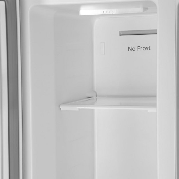 Образование льда предотвращает специальный вентилятор, который заставляет холодный воздух циркулировать по всему пространству морозильника. Лед при этом оседает не на стенках, а выводится за пределы камеры и остается на испарителе холодильника. Вентилятор работает попеременно с нагревателем, благодаря чему иней на испарителе оттаивает, а талая вода стекает в поддон, откуда испаряется естественным способом. Вопреки распространенному мнению, в морозильнике с системой No Frost продукты не заветриваются и не сохнут, а энергопотребление ненамного превышает этот показатель для обычных холодильников.
