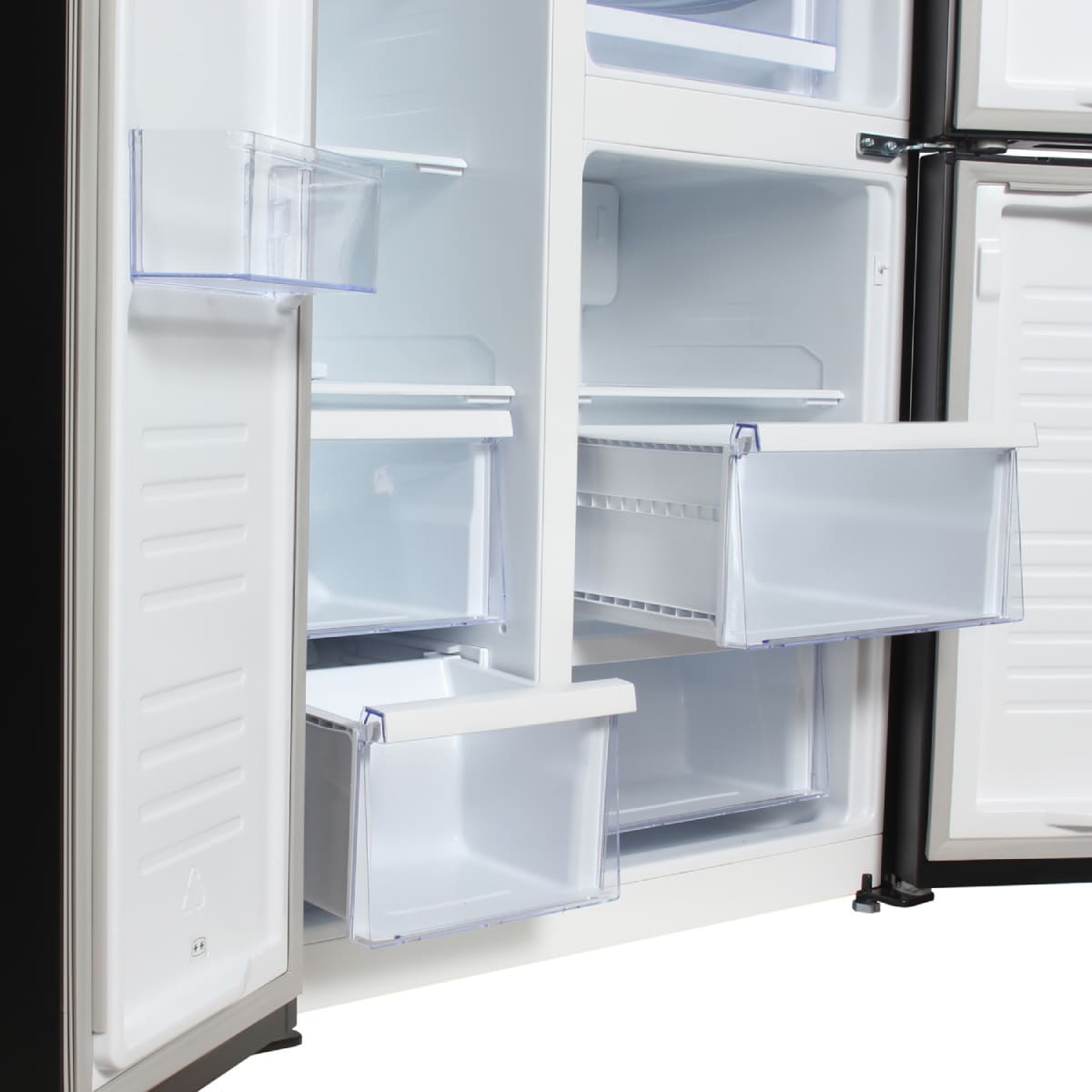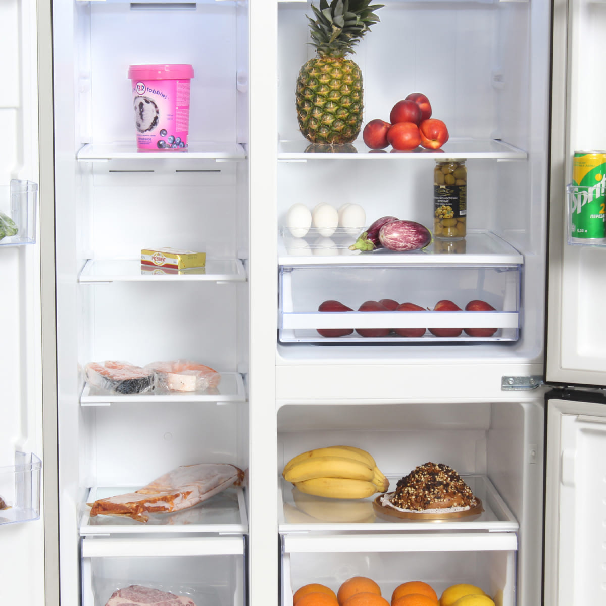 Холодильники Side-by-Side, что в переводе означает «бок-о-бок», — вместительные устройства, в которых холодильная и морозильная камеры располагаются рядом друг с другом. Они предназначаются для хранения значительного запаса продуктов и иногда называются холодильниками с американским типом компоновки, поскольку такие приборы с распашными дверями появились именно в США.