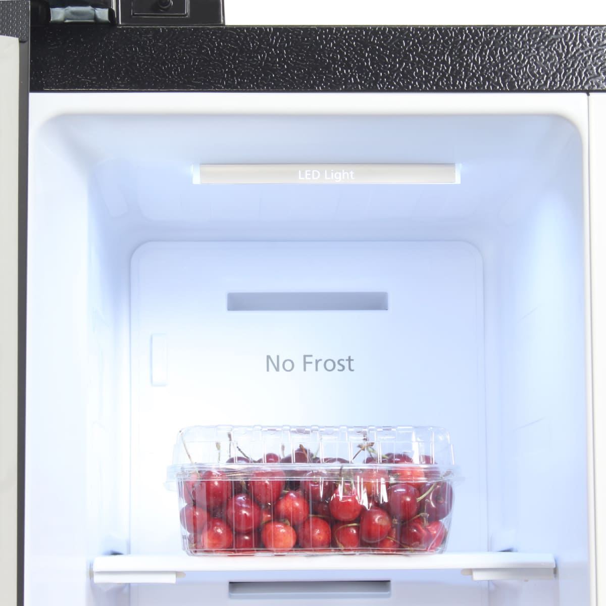 No Frost (Total No Frost, Frost Free): вентилятор обеспечивает циркуляцию охлажденного воздуха, благодаря чему лед не нарастает на стенке, а концентрируется только на скрытом внутри холодильника испарителе. Талая вода собирается в специальной емкости и испаряется. Такой холодильник не нужно размораживать – это экономит время и позволяет не останавливать прибор. Благодаря этим плюсам в современных моделях No Frost – самая распространенная система.