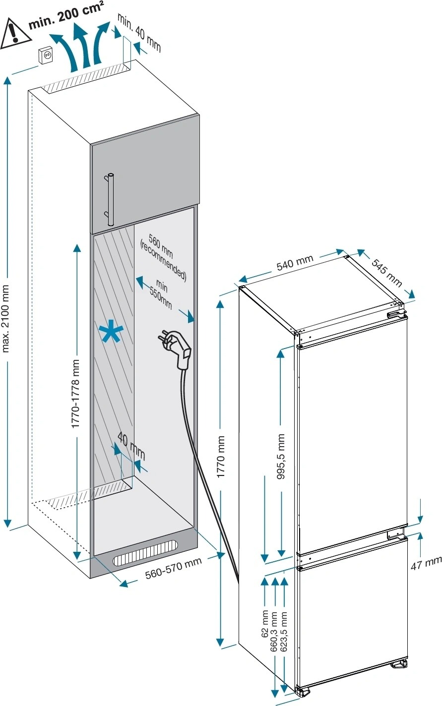 Гораздо большим спросом пользуются так называемые средне-высокие холодильники, чьи размеры находятся в диапазоне от 150 см до 180 см. Это встраиваемые и отдельностоящие модели, которые подойдут практически для любой кухни.