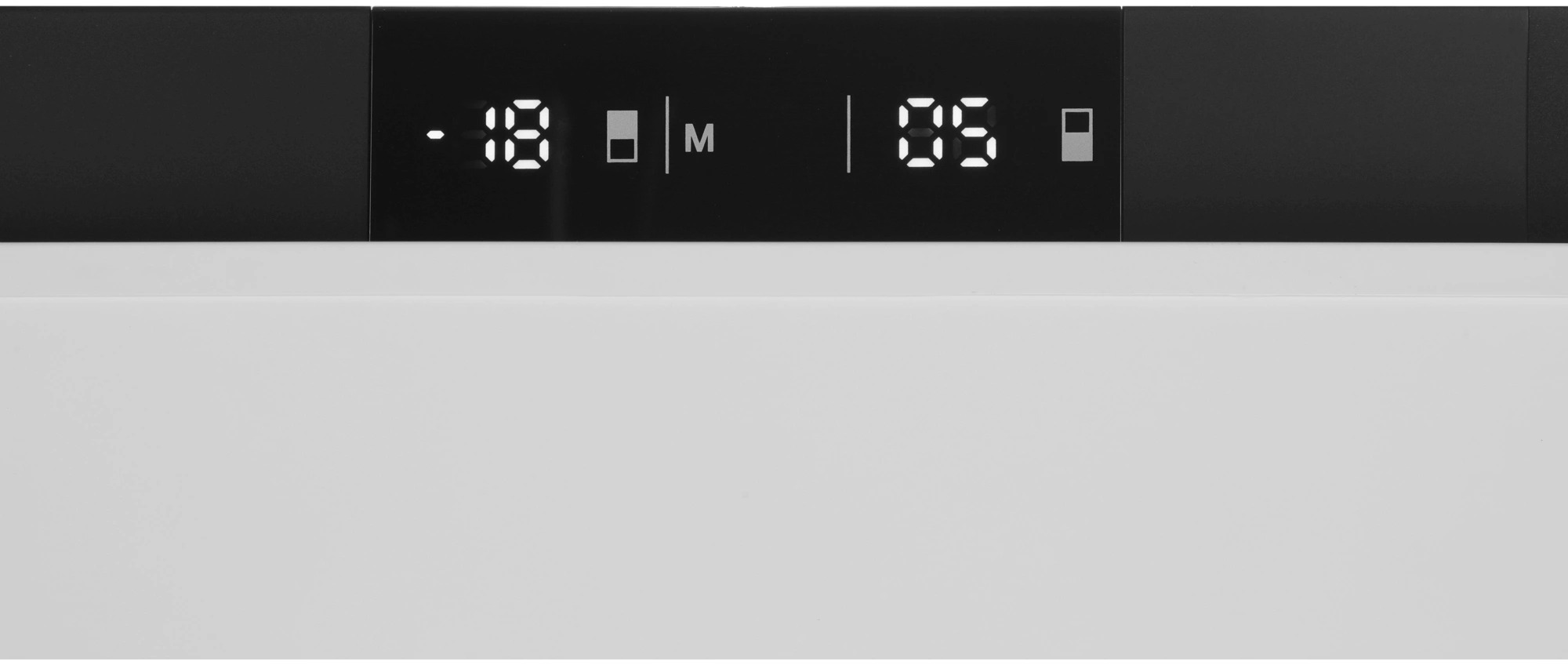 Гораздо точнее сориентироваться по индикаторам можно в холодильниках с электронной системой управления. Эти устройства обычно оснащены дисплеем, на котором высвечиваются значения фактической температуры в холодильной и морозильной камерах. Рядом с ними располагаются кнопки, во многих случаях сенсорные, при помощи которых можно регулировать температуру в каждой камере отдельно, и индикаторы включения этих камер. Здесь же, на панели инструментов, находятся индикаторы, указывающие на активацию дополнительных опций — например, режимов быстрого замораживания и быстрого охлаждения, отпускного режима, блокировки панели управления от детей.