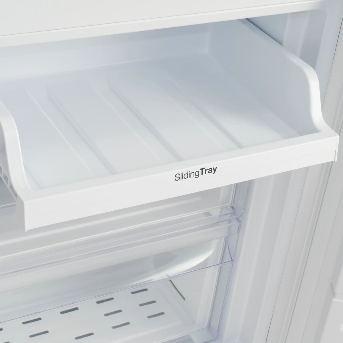 Ящики для продуктов изготавливаются либо целиком из прозрачного пластика, либо часто имеют переднюю прозрачную панель, которая обеспечивает лучший обзор. Полки в большинстве холодильников могут перемещаться по высоте, устанавливаются на специальных направляющих и без труда снимаются для очистки.