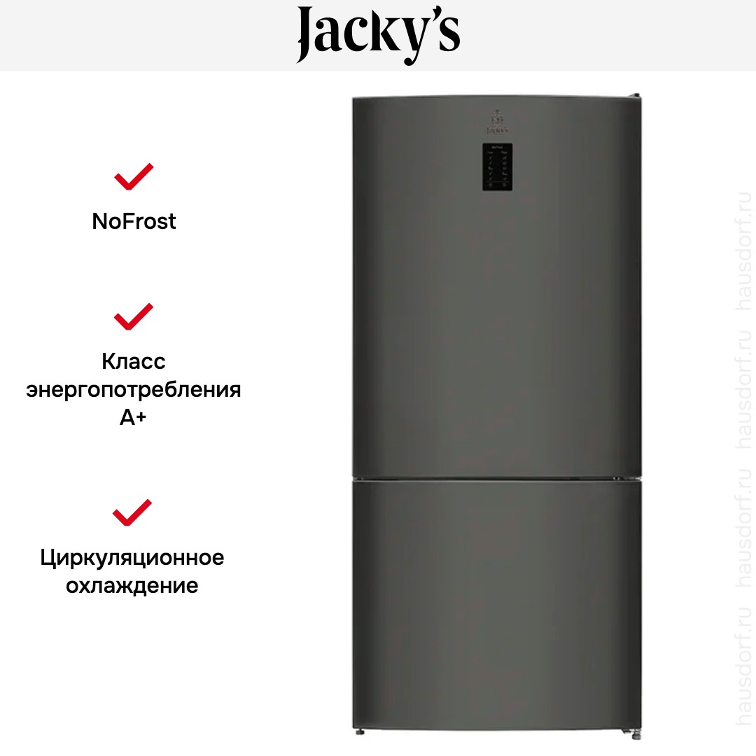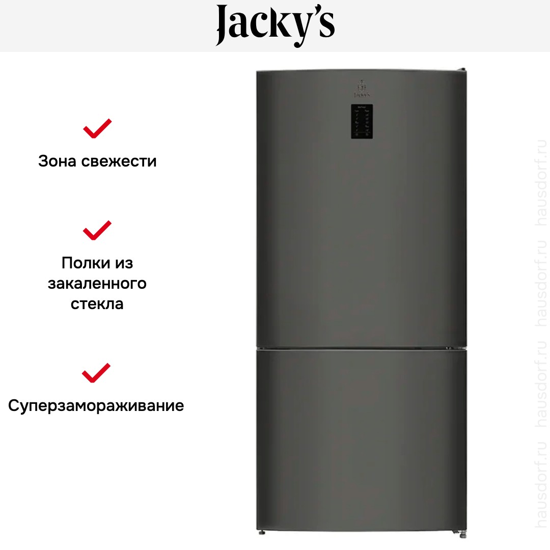 Холодильник Jacky S JR-FD568NF — это отдельно стоящий крупногабаритный агрегат высотой 186 см и шириной 84 см, выполненный в глубоком черном цвете с глянцевым фронтом. Его внушительные габариты 186×84×75 см сочетают вместительность и аккуратный силуэт, подходящий для просторной кухни или встроенного острова. Правосторонний дверной упор обеспечивает удобство расположения рядом с мебелью, а строгая монохромная отделка придаёт интерьеру современный и статусный вид.