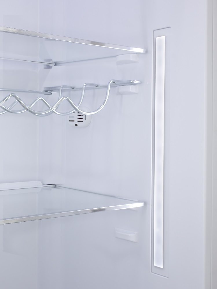 Внутреннее освещение холодильной камеры позволяет обеспечить хороший обзор содержимого и быстро найти необходимые продукты. Чем меньше времени будет открыта дверца холодильника, тем лучше будет поддерживаться в камере выбранная температура, следовательно, улучшится и качество хранения продуктов.