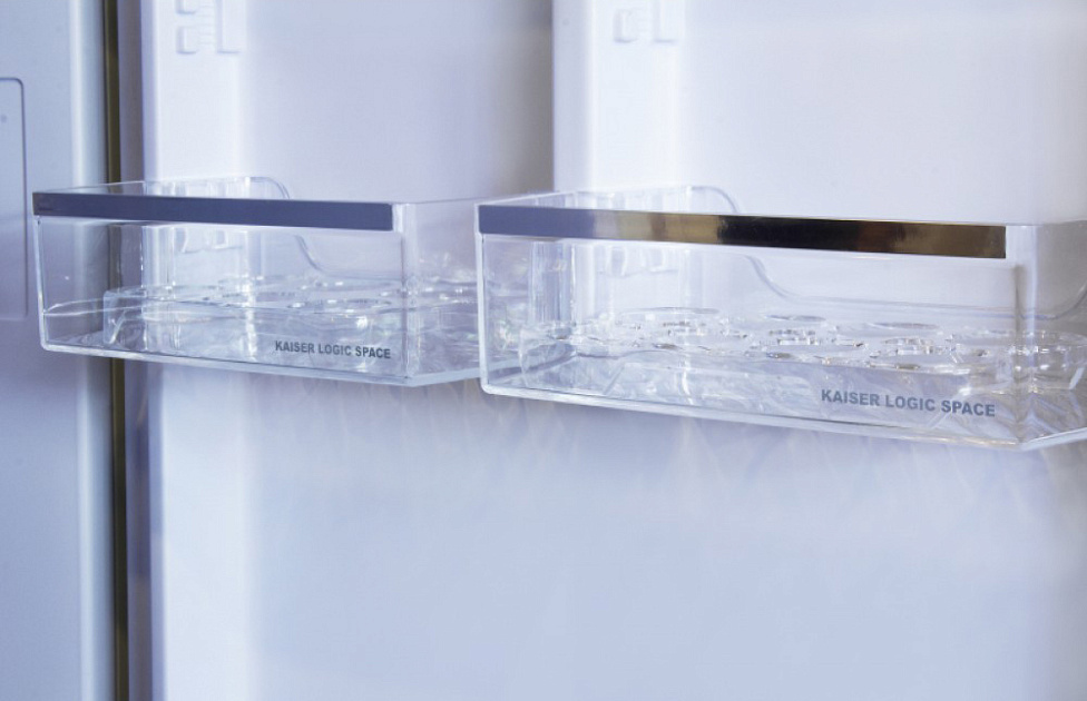 Ящики для продуктов изготавливаются либо целиком из прозрачного пластика, либо часто имеют переднюю прозрачную панель, которая обеспечивает лучший обзор. Полки в большинстве холодильников могут перемещаться по высоте, устанавливаются на специальных направляющих и без труда снимаются для очистки.