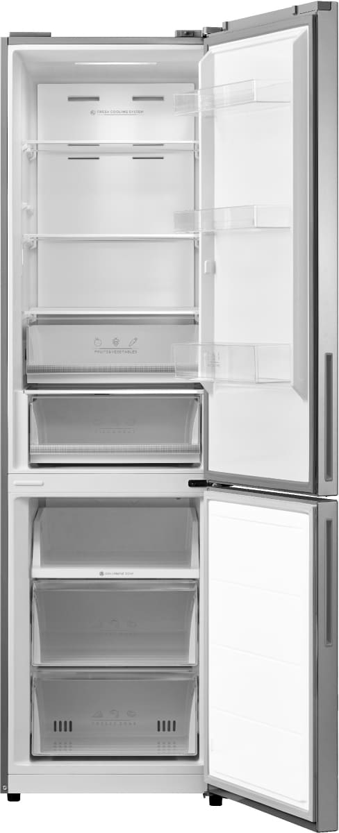 Специальная зона свежести предназначена для правильного и более длительного хранения овощей, фруктов, зелени. В ней поддерживается околонулевая температура, поэтому продукты не перемораживаются и не пересыхают. Система охлаждения этого холодильника — динамическая.