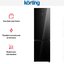 Холодильник Korting KNFC 62029 GN — надежный помощник в хранении продуктов вашей семьи. Стильный черный холодильник со стеклянным фронтом может станет дизайнерским центром вашей кухни. Вы можете перевесить двери на другую сторону, чтобы оптимизировать пространство и разместить прибор максимально удобно. Панель управления расположена снаружи, поэтому не нужно совершать лишних движений, чтобы настроить температуру или выбрать специальный режим. Холодильник относится к типу отдельностоящих с морозильной камерой, расположенной снизу.