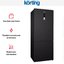 Отдельно стоящий холодильник с морозильной камерой снизу габаритами 185.5×70.3×70.3 см рассчитан на установку в любой удобной точке кухни. Корпус цвета черной стали с металлическим фронтом и боковыми стенками выглядит солидно и практичен в уходе. Две двери с упором справа при необходимости можно перенавесить, а регулируемые ножки помогают точно выставить уровень даже на неровном полу.