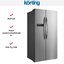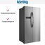 Korting KNFS 91797 X — отдельно стоящий холодильник Side-By-Side высотой 179 см и шириной 90 см в корпусе цвета нержавеющей стали с удобными большими вертикальными ручками. Общий объем его составляет 510 литров, левая морозильная камера имеет объем 175 литров. Система размораживания No Frost без образованию инея и льда в обоих отделениях гарантирует легкую очистку стенок — их достаточно протереть влажной губкой.