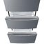 Трехдверный холодильник Korting KNFF 61889 X — отдельно стоящая модель высотой 187 см и шириной 62 см. Общий объем составляет 321 литр, в том числе объем морозильной камеры — 118 литров. Особенность модели — морозильник в виде двух независимых выдвижных ящиков: такая компоновка способствует лучшему сохранению холода. Для поддержания стабильной температуры служит также холодная задняя стенка Cold Metal. Система размораживания No Frost препятствует появлению льда на стенках и продуктах, так что уход за прибором отнимает совсем немного времени. На дверце находится круглая сенсорная панель управления с цифровым дисплеем и кнопками регулировки температуры и задания дополнительных опций.