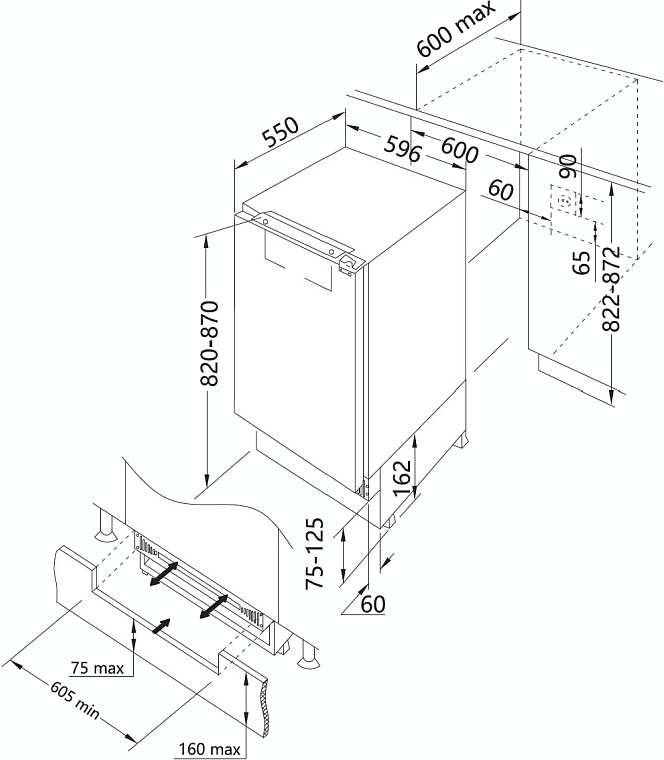 Мини-холодильники, которые могут быть установлены в тумбу или под столешницу, отличаются несколько меньшей шириной от 50 см. Такую же небольшую ширину имеют встраиваемые модели, что связано со способом их установки.