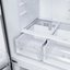 Холодильник KRONA Eiskalt 7970 XD TNF Inox — презентабельный отдельно стоящий агрегат, созданный для тех, кто ценит сочетание строгой эстетики и продуманной функциональности: высота 180 см, ширина 79 см и глубина 70 см обеспечивают внушительную вместимость при аккуратном занимаемом пространстве, а корпус и фронт из нержавеющей стали в стиле OPTIMA придают кухонному ансамблю современный характер и устойчивость к следам эксплуатации; скрытая ручка и боковой упор дверей создают гладкую поверхность фасада, а LED-дисплей на дверце с сенсорными кнопками и электронным управлением делает эксплуатацию интуитивной и быстрой. Внутреннее пространство рассчитано на три камеры: просторная холодильная секция с полезным объемом 268 л оснащена тремя полками из закаленного стекла, зоной свежести Crisper Zone с контролем влажности (две полки/контейнера и один выдвижной ящик) и шестью пластиковыми полками на двери, что позволяет аккуратно распределять продукты, напитки и деликатные продукты; светодиодная подсветка равномерно освещает полки, а боковой съемный лоток упрощает уборку. Морозильное отделение расположено внизу и имеет полезный объем 133 л, две стационарные полки и четыре выдвижных ящика из пластика — это удобно для хранения больших запасов и быстрой выборки нужных упаковок; минимальная температура достигает −22 °C, рабочий диапазон составляет −14...−22 °C, есть функция суперзамораживания и лоток для приготовления кубиков льда, производительность замораживания — до 16 кг в сутки, автономное сохранение холода при отключении питания — до 20 часов. Система Total No Frost в обеих камерах исключает образование инея и обеспечивает стабильную циркуляцию воздуха при помощи технологии Smart AirCool и динамического охлаждения, что способствует равномерному распределению температуры по всем зонам; предусмотрена независимая регулировка параметров в холодильной и морозильной частях, режим энергосбережения и режим «Отпуск» для длительного отсутствия, а также индикация температуры обеих секций и защита от детей. Надежная инверторная техника на одном компрессоре с хладагентом R600a отличается повышенной энергоэффективностью (класс A++ и годовое потребление 288 кВт·ч) и низким уровнем шума — всего 41 дБ, при этом напряжение работы 220-240 В и частота 50 Гц соответствуют стандартам сети; габариты упаковки 190×86×73 см облегчают доставку, а вес нетто 82 кг (брутто 91 кг) и регулируемые ножки обеспечивают устойчивость на неровных полах. Дополнительные удобства включают индикацию открытой двери со звуковым сигналом, возможность блокировки управления для безопасности, минимальное изменение интерьера благодаря аккуратной компоновке четырёх дверей и трёх температурных зон, что делает этот прибор отличным выбором для семьи, ценящей порядок, сохранность продуктов и продвинутые режимы работы при стильном внешнем оформлении.