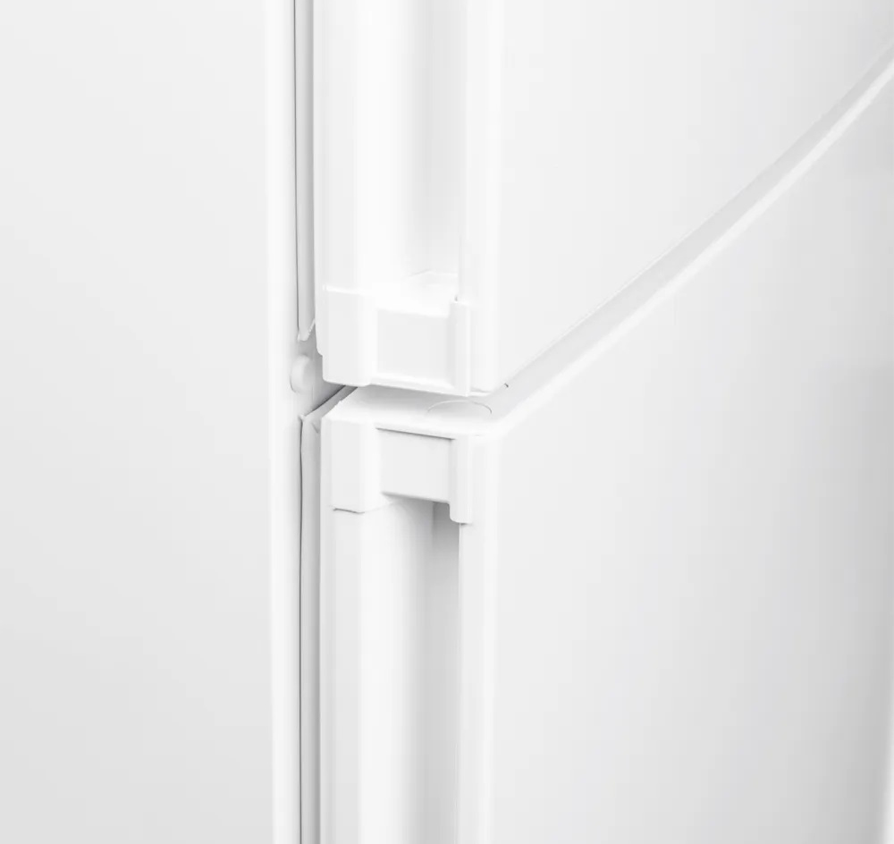 Данная модель — отдельностоящая, поэтому нужно тщательно подобрать место для ее размещения. Благодаря внушительным размерам, в частности высоте, она подходит большим пространствам — просторной кухне, еврогостиной. Вы можете поменять направление открывания двери, так как упор переставляемый и ее можно перевесить на другую сторону. Такая функция открывает больше возможностей для установки. Холодильник с морозильником обладает всеми опциями, которые чаще всего ищут и выбирают покупатели. Стандартная конфигурация — универсальный вариант для любой квартиры. Количество камер: 2.