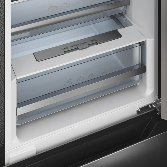 Вместительные контейнеры позволяют хранить достаточное количество овощей и фруктов. Для более длительного хранения и поддержания свежести овощей и фруктов разработаны специальные системы хранения. Среди них, например, зона свежести с увеличенной влажностью до 85% и температурой около 0 градусов. Это герметично закрывающийся ящик, часто на выдвижных роликах или направляющих, в котором имеется специальное задвижка, позволяющая регулировать влажность. Как известно, при более высокой влажности продукты с большим содержанием воды дольше остаются свежими.