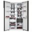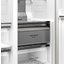 Внутренняя компоновка рассчитана на большую семью или тех, кто часто принимает гостей. Общий полезный объём 623 л разделён на холодильную секцию 332 л и морозильную 291 л. В холодной части установлены 4 стеклянные полки, которые прочны и легко очищаются, а также большой ящик плюс два контейнера для овощей и фруктов для аккуратного хранения. На дверцах расположены три пластиковые полки для бутылок и соусов, что освобождает центральное пространство и упрощает доступ к часто используемым продуктам. В морозильной зоне четыре полки и три выдвижных ящика помогают организовать заморозку и быстро найти нужный пакет.