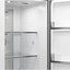 Внутренняя организация продумана для больших запасов и удобной сортировки. Общий объём 602 л и полезный объём 503 л рассчитаны на семьи и тех, кто любит запасаться продуктами. Холодильная камера вмещает 294 л, морозильная — 308 л, что позволяет хранить большие партии свежих и замороженных блюд одновременно. В холодильной части расположены четыре стеклянные полки, три из которых регулируемые, а также одна фиксированная. На дверце три пластиковые полки для бутылок и соусов, есть лоток для яиц и LED-подсветка для равномерного освещения всех уровней. В морозильном отделении семь полок и три ящика создают удобную систему для упаковок и порционных продуктов.