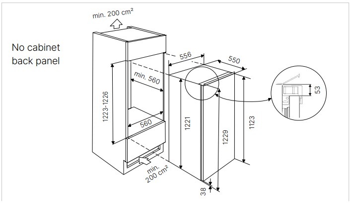 Мини-холодильники, которые могут быть установлены в тумбу или под столешницу, отличаются несколько меньшей шириной от 50 см. Такую же небольшую ширину имеют встраиваемые модели, что связано со способом их установки.