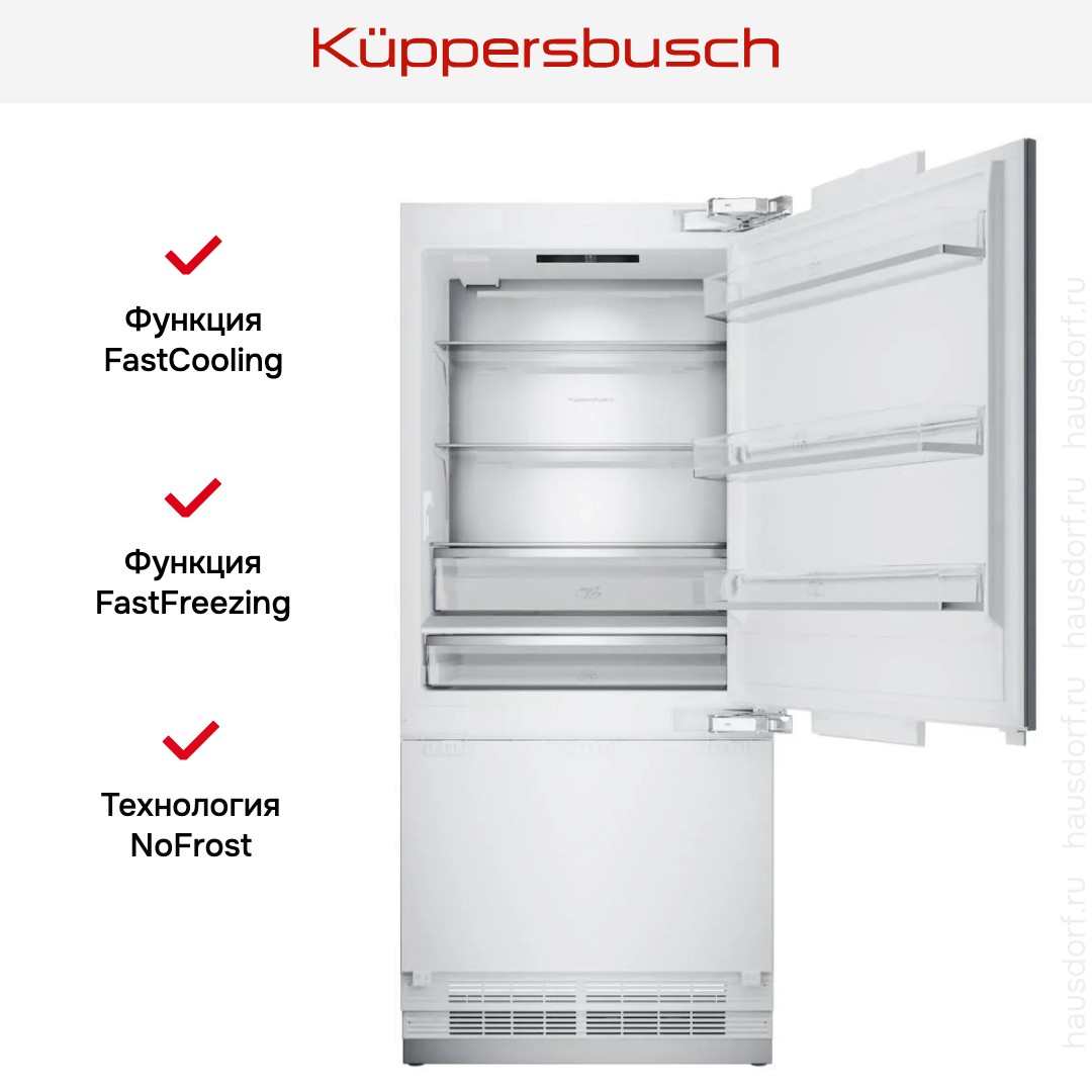 Встраиваемый холодильник Kuppersbusch FKGFX 9800.0i — замечательный выбор для всех, кто нуждается в надежном и современном приборе, чтобы обустроить кухню по последнему слову техники.