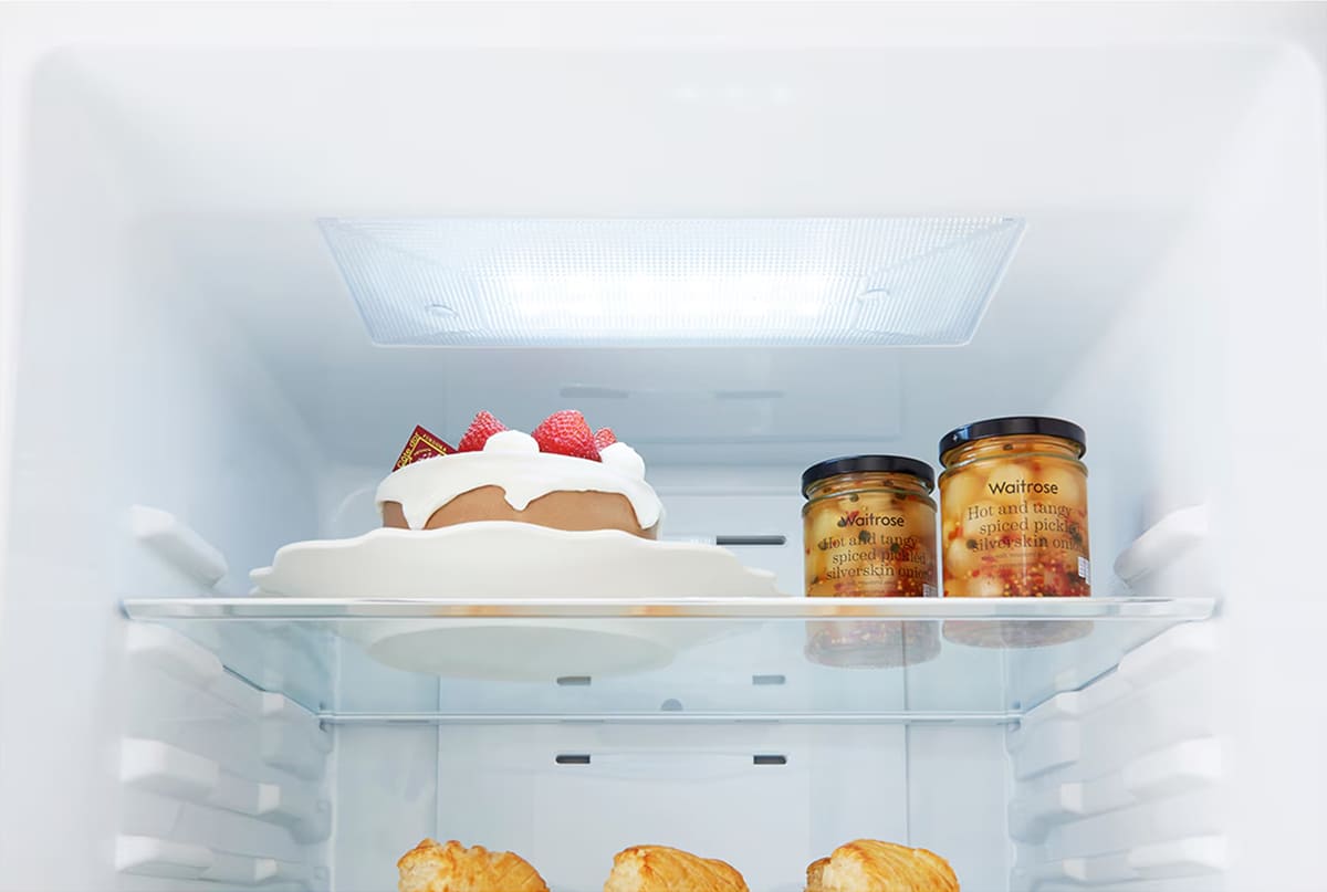 Внутреннее освещение холодильной камеры позволяет обеспечить хороший обзор содержимого и быстро найти необходимые продукты. Чем меньше времени будет открыта дверца холодильника, тем лучше будет поддерживаться в камере выбранная температура, следовательно, улучшится и качество хранения продуктов.