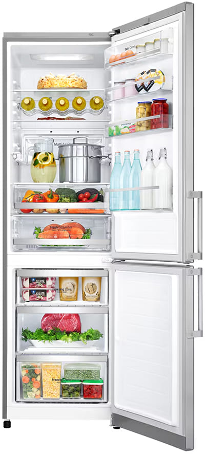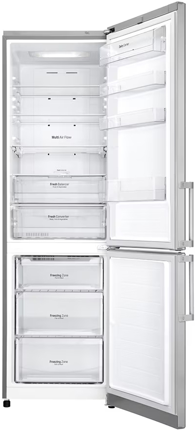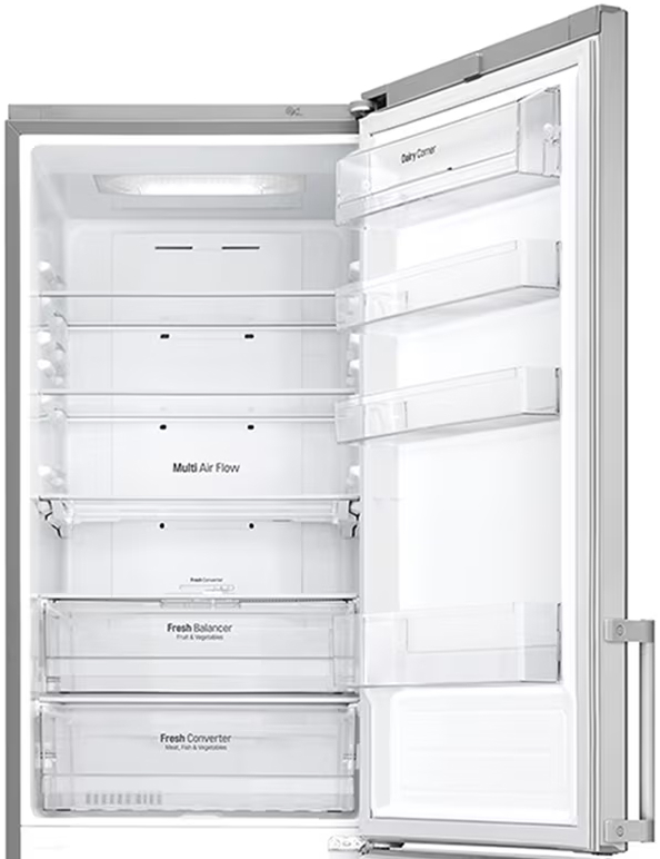 Специальная зона свежести предназначена для правильного и более длительного хранения овощей, фруктов, зелени. В ней поддерживается околонулевая температура, поэтому продукты не перемораживаются и не пересыхают. Система охлаждения этого холодильника — Multi-Airflow-System.