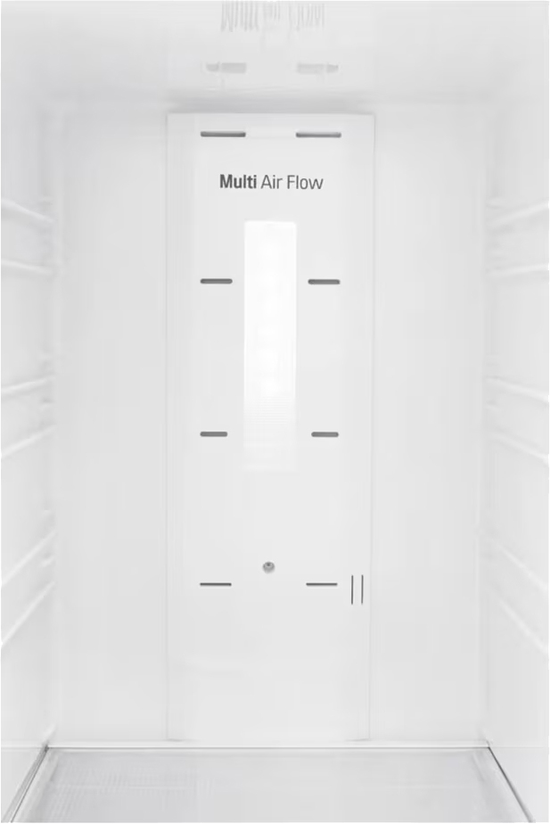Специальная зона свежести предназначена для правильного и более длительного хранения овощей, фруктов, зелени. В ней поддерживается околонулевая температура, поэтому продукты не перемораживаются и не пересыхают. Система охлаждения этого холодильника — многопоточное охлаждение Multi-flow.